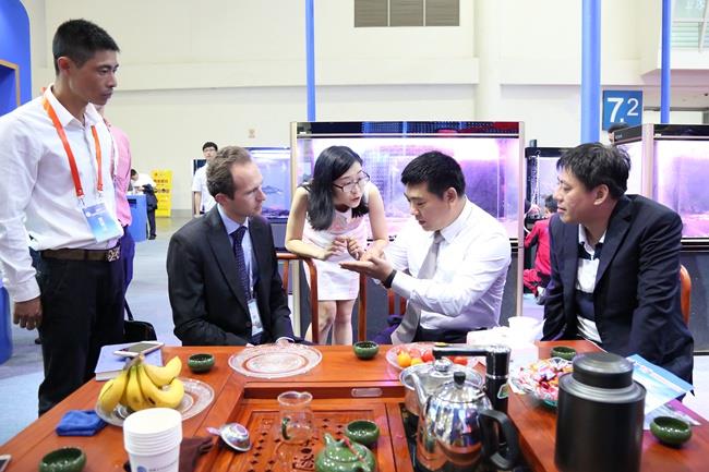 上圖為陳慶堂董事長向于康震副部長介紹天馬科技產(chǎn)品及相關(guān)水產(chǎn)品
