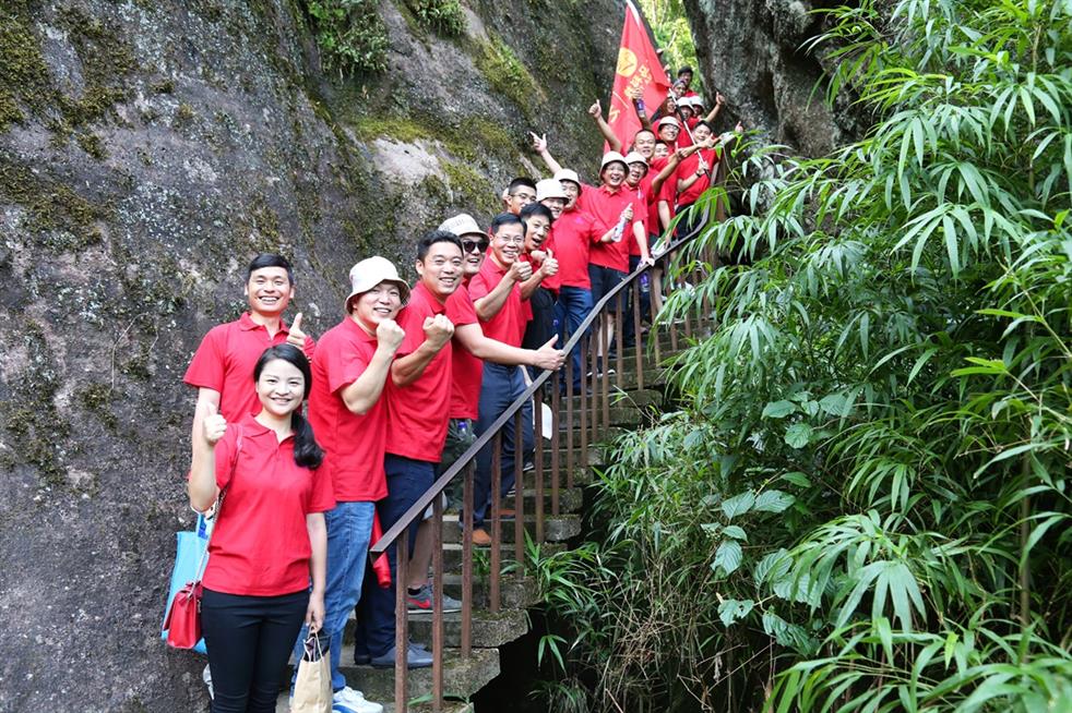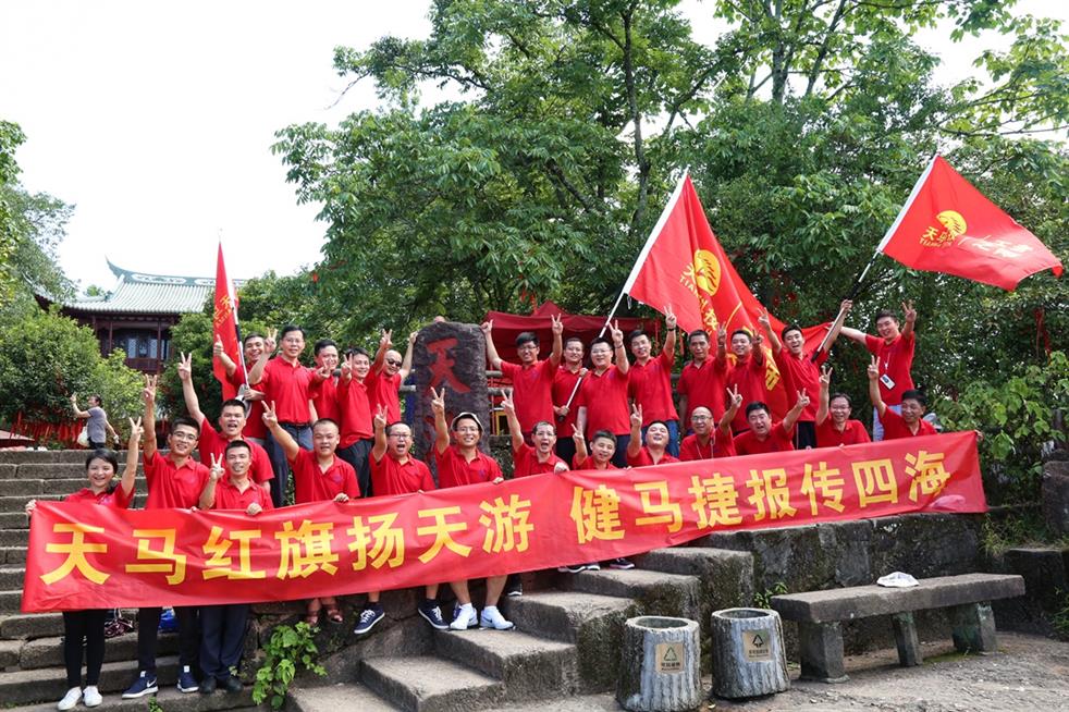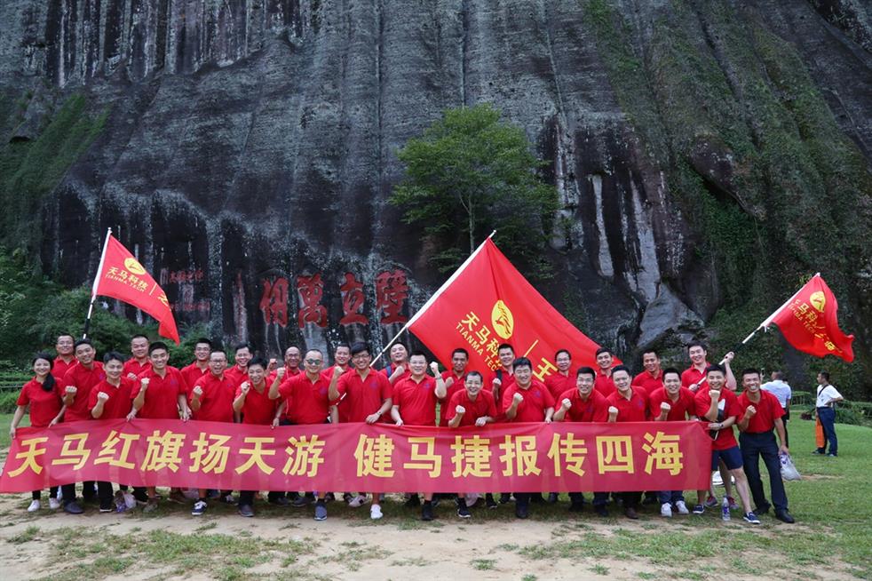 天馬科技訊 “天馬紅旗揚(yáng)天游,健馬捷報(bào)傳四海。”7月19日,世界自然與文化雙世遺產(chǎn)勝地武夷山天游峰頂傳來(lái)天馬人的陣陣爽朗的笑聲。為豐富、活躍集團(tuán)員工的業(yè)余文化生活,和著2017年半年度經(jīng)營(yíng)分析會(huì)擂響的戰(zhàn)鼓,天馬科技在經(jīng)營(yíng)分析會(huì)結(jié)束后,組織三十多名集團(tuán)精英代表挑戰(zhàn)自我,開(kāi)展了勇攀武夷山第一勝地天游峰活動(dòng),并在其后進(jìn)行九曲漂流、觀(guān)看《印象大紅袍》山水實(shí)景演出,體驗(yàn)武夷山文化,積蓄沖刺年度經(jīng)營(yíng)目標(biāo)的力量。